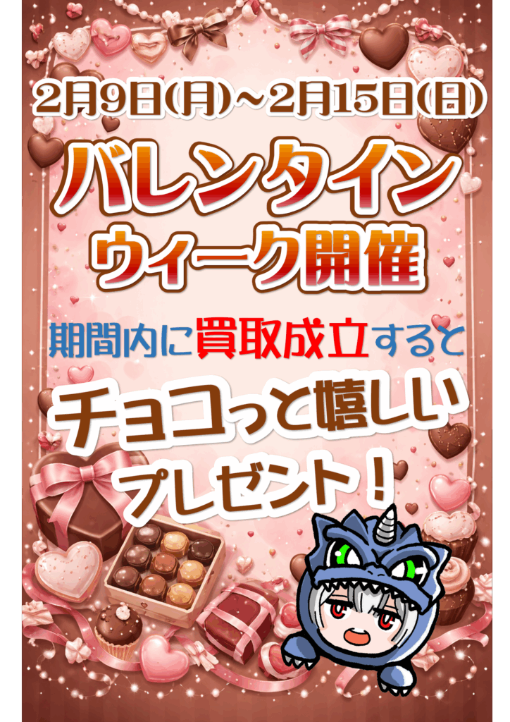 期間中に買取が成立すると🍫チョコ🍫っとうれしいプレゼント😊