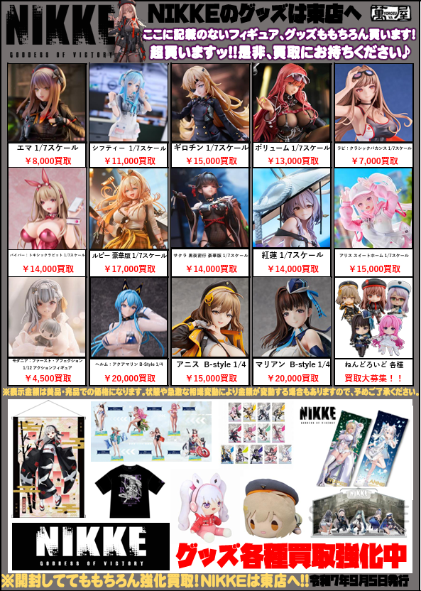 東店ではNIKKEのフィギュアやアクリルスタンド、缶バッジやカードなど 絶賛強化買取中!! 特にスケ...