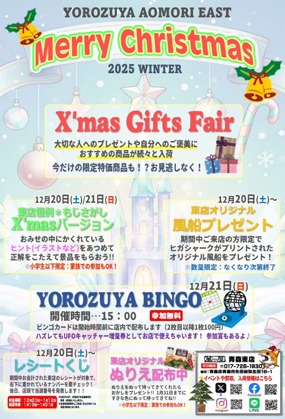 青森東店公式インスタ◆https://www.instagram.com/yorozuya_higashi_hurugi