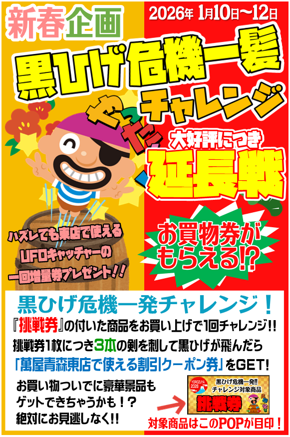 新年で大好評だったイベントを三連休にもやっちゃいます‼️ 【黒ひげ危機一髪チャレンジ:延長戦】 新年...